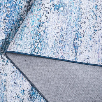 Designed with a harmonious blend of grey and blue hues, the rug's transitional style integrates seamlessly with a variety of decors, from modern to classic, adding a touch of sophistication to any hallway or narrow space. The subtle, distressed pattern provides a contemporary look that captures the essence of time-honored craftsmanship.