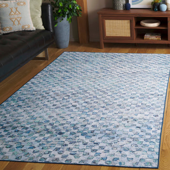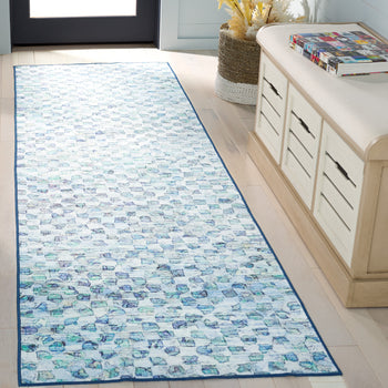 Transform your living space with the sophisticated charm of our transitional runner area rug, sized 2'-6" X 8', and finished in a harmonious blend of grey and aqua hues. Crafted with the utmost precision using a Power Loomed technique, this exquisite piece boasts a durable construction of high-quality polyester, ensuring long-lasting beauty and ease of care.
