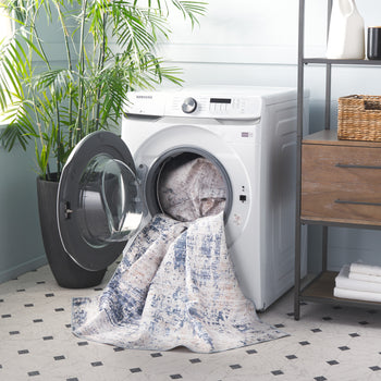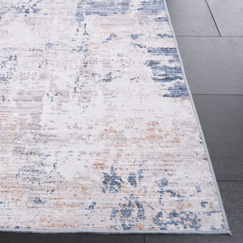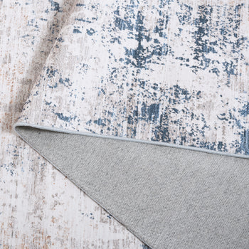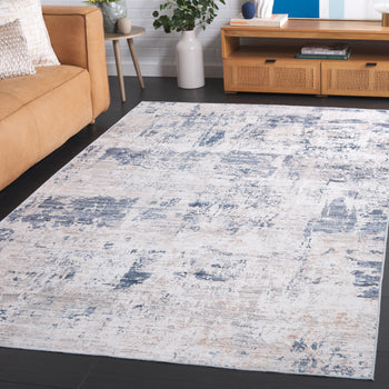 Crafted with precision on a power loom, this durable rug is made from the finest quality polyester, offering a soft and silky texture underfoot. The beautiful beige and blue color palette creates a serene foundation for any room, allowing for versatile styling options.