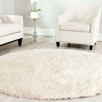 The rug's serene white hue adds a touch of sophistication and seamlessly blends with a variety of decor styles. Although the image showcases the detailed texture and quality regardless of its size, rest assured that the actual size offered brings the same level of opulence and style to smaller spaces or as a focal point of an intimate setting.