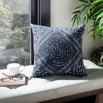 Dramatic and mysterious, this stylish Safavieh Mallory Pillow adds depth and dimension to any sofa, chair or loveseat. Designed with a spectacular deep blue background, it boasts the perfect hue to showcase the power and movement of its intricate white contemporary geometric pattern. It's the superstar accessory in any bedroom or living room.