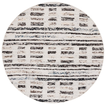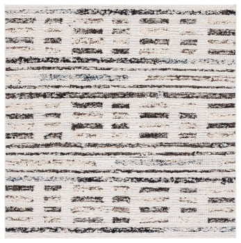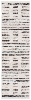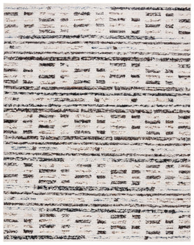 Featuring a contemporary style that seamlessly blends into modern interiors, this area rug draws the eye with its striking pattern captured in the image. The design showcases a dynamic array of brushstroke-like motifs in dark brown, skillfully juxtaposed against an ivory backdrop with hints of blue accentuating the piece's visual appeal.