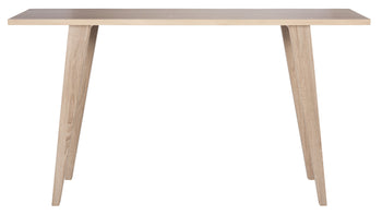 A modern interpretation of the centuries old refectory table, the natural toned oak grain of the Manny console alludes to the new rustic chic style. With its sleek lines and splayed legs, this table works equally well in the living room or entry hall.