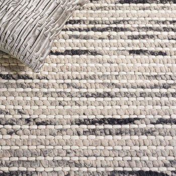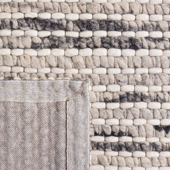 Designed with a subtle blend of grey and ivory hues, our small rectangular rug boasts a delicate braided style, providing a touch of refinement and texture to any space. The rug pattern revealed in the image showcases a serene and harmonious mix of shades in a minimalist design, echoing sophistication and tranquility.