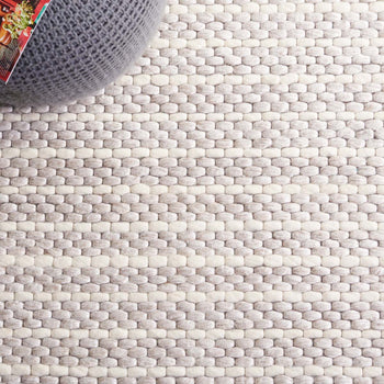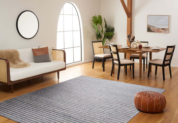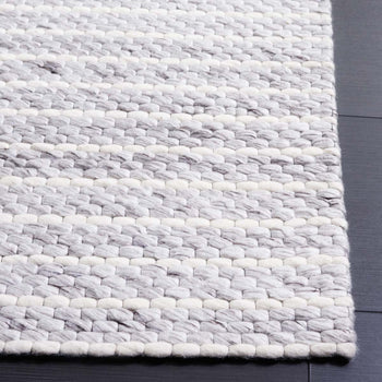 In a chic grey and ivory palette, the rug boasts a subtle yet sophisticated striped pattern that effortlessly complements a range of interior decors. The contemporary style is matched by the durability of its materials; a blend of high-quality wool and cotton creates a soft yet robust surface, inviting bare feet and frequent use.
