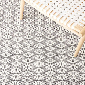 Intricately designed with a harmonious ivory and black color palette, this rug offers a timeless geometric pattern that invokes a sense of balance and sophistication. The eye-catching design complements a variety of interior styles, making it a versatile addition to your home decor.