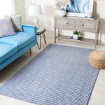 Elevate your living space with the timeless elegance of our 3' X 5' Blue/Ivory handwoven area rug. Crafted with exceptional attention to detail in India, this exquisite piece merges traditional craftsmanship with contemporary design. The small rectangle shape and modest height of 3/8" make it a versatile addition to any room, perfectly sized for accentuating smaller spaces or adding an extra touch of comfort underfoot.
