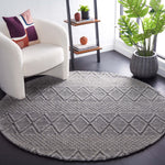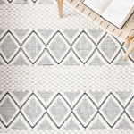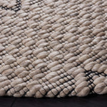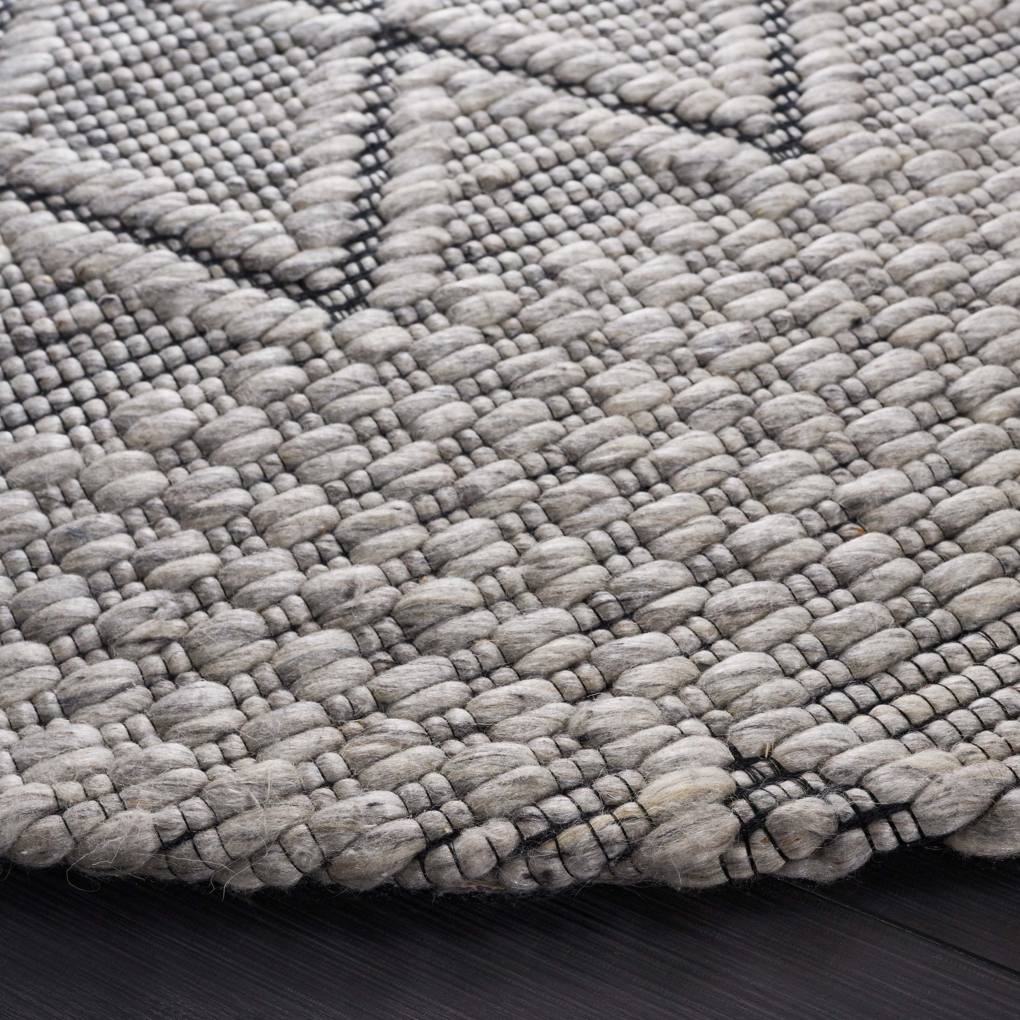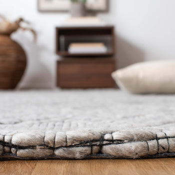 Elevate your living space with our hand-woven area rug, a perfect blend of traditional craftsmanship and contemporary style. This exquisite piece, in a versatile 3' X 5' small rectangle size, showcases an elegant light grey and black color palette, ideal for complementing a wide range of interior decors.