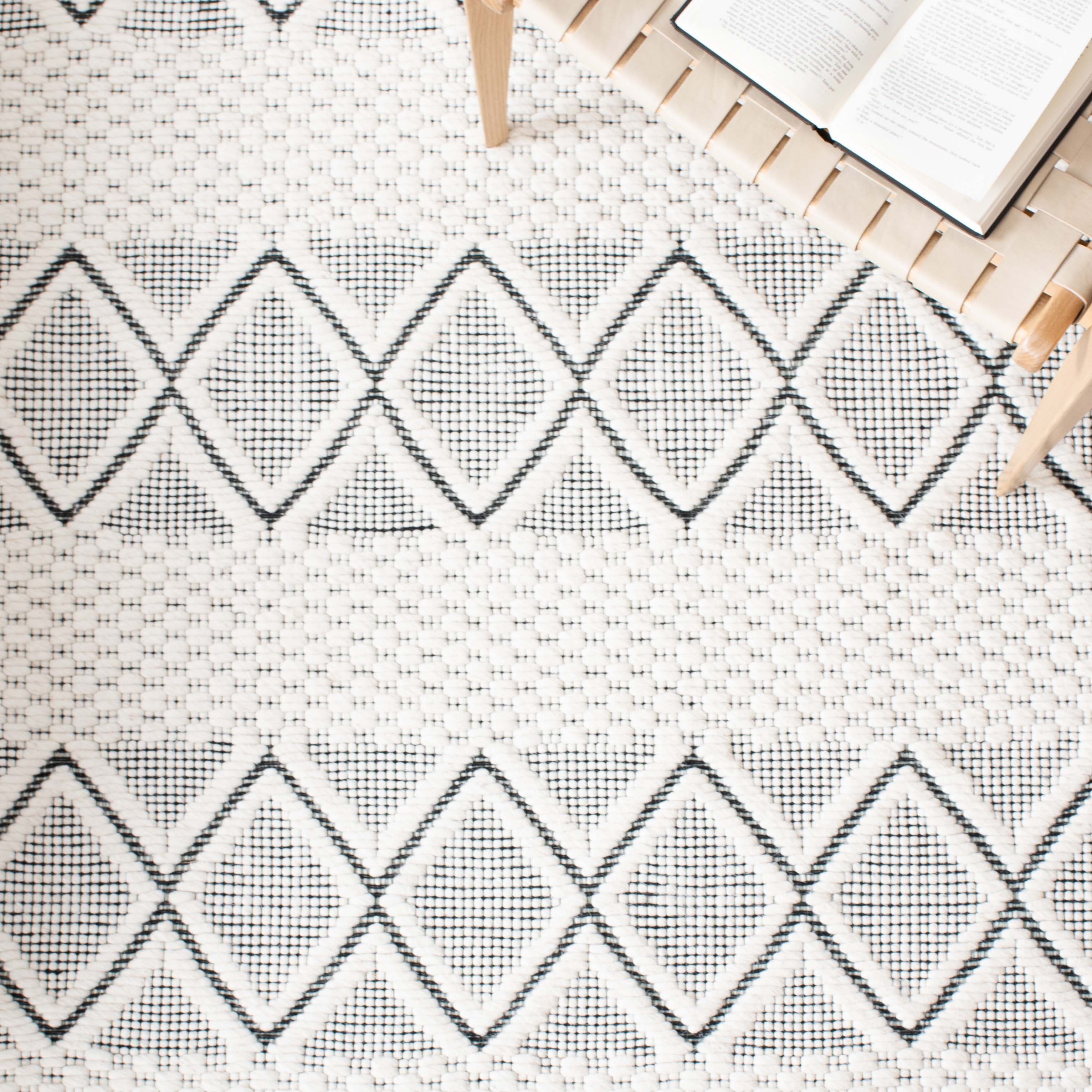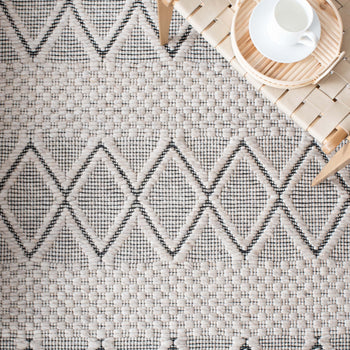 The rug's standout pattern, as displayed in the image, reveals a tasteful diamond motif that exudes class and sophistication. This timeless design seamlessly integrates into both modern and traditional settings, creating a focal point that is both visually appealing and subtly luxurious.