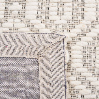 Elevate your living space with the understated elegance of our 3' X 5' Hand-Woven Grey/Ivory Area Rug. Meticulously crafted by skilled artisans in India, this small rectangle rug boasts a height of 3/8", providing a plush surface underfoot.