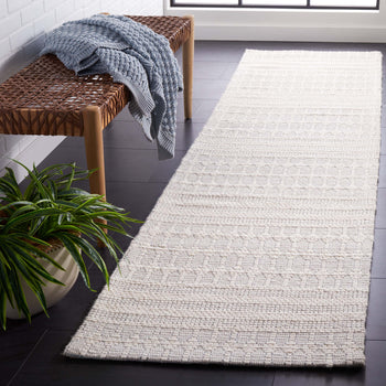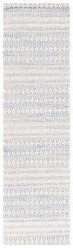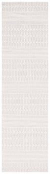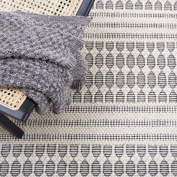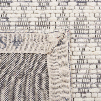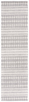 Reflecting the rich heritage of Indian textile artisanship, this rug's design features a sophisticated array of geometric motifs, giving it a contemporary flair that complements its traditional roots. The versatile grey and ivory colors and the repeating patterns make it a versatile addition suitable for a variety of living spaces.