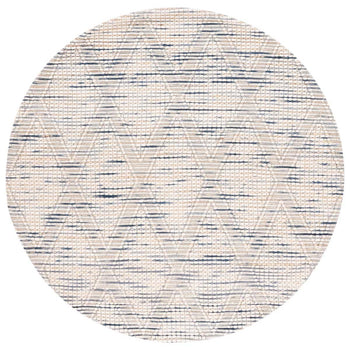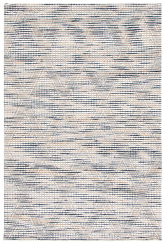 The rug showcases a beautiful geometric pattern that exudes contemporary elegance while maintaining a classic charm. The intricate design is accentuated by the subtle yet vibrant hues of ivory and blue, creating a visual masterpiece that's both captivating and versatile.