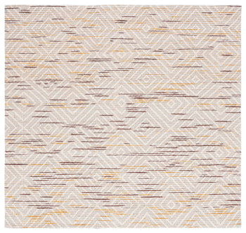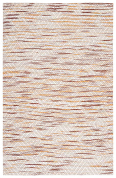The artisanal rug showcases a sophisticated ivory and dark brown color palette, featuring a harmonious geometric pattern that adds a modern yet timeless allure to your floors. The design constitutes dynamic shapes that interlock in a rhythmic sequence, accented with subtle gold-toned highlights that catch the light and add a touch of luxury.