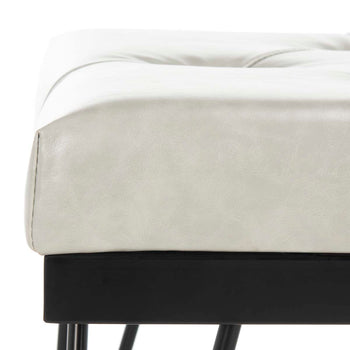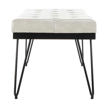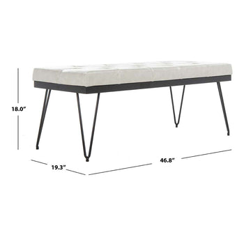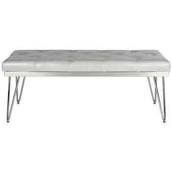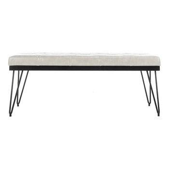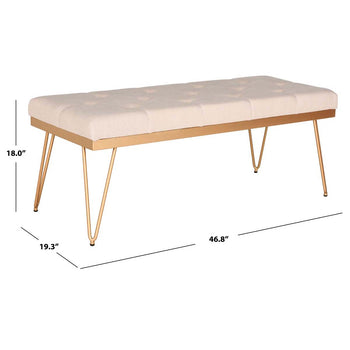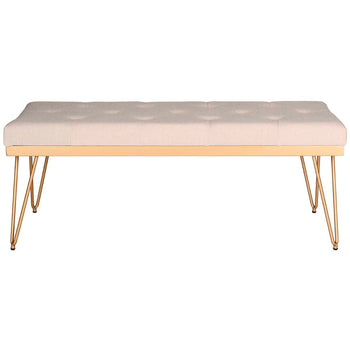 Sleek and sculptural, this chic new design takes the viewing bench to a new level of sophistication. With beige linen upholstery and gold hairpin legs, it offers extra seating in the living room or bedroom, as well as an element of architectural interest.