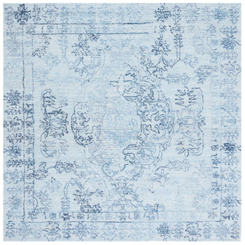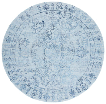 Delight in the tranquil beauty of light blue infused with navy accents, a color palette that brings a calming presence to any room. The rug's intricate patterns, reminiscent of timeless transitional styles, draw inspiration from classic motifs, harmoniously blending the old with the new to create a sense of balance and elegance.