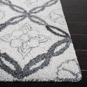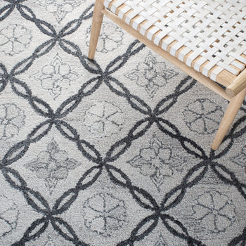 Adorned with an elegant pattern, the tasteful Ivory and Grey color palette of the rug adds a serene and sophisticated charm to your space. The intricate transitional design offers a perfect balance between traditional and contemporary styles, making it versatile to complement any room.