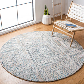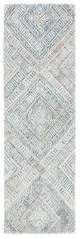 Crafted in India, a country renowned for its artisanal rug-making traditions, the rug showcases a rich turquoise and beige color palette that breathes life into any corridor, entryway, or living space. The inspiration drawn from transitional motifs is evident in the intricate geometric patterns adorning the runner, which offer a visual feast of diamonds and angular lines, suggesting both modern sophistication and timeless elegance.