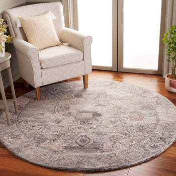 The rug is constructed with high-quality polyester, known for its durability and softness, making it an ideal choice for high-traffic areas while being easy to care for. The serene palette of grey and soft pink hues adds a subtle yet distinctive charm to your d?cor, harmonizing with both modern and traditional interiors.