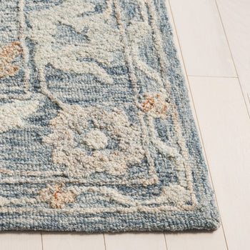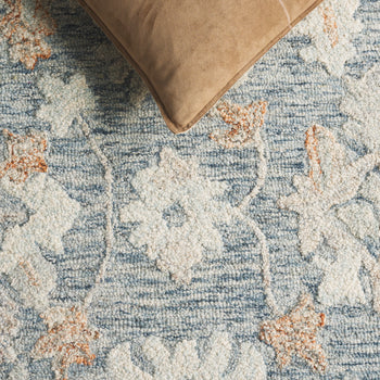 Enhance your living space with this hand-tufted runner rug, intricately crafted in India with a stunning blend of 80% wool and 20% cotton. Measuring 2 feet 3 inches by 8 feet, this runner features a comfortable 1/2 inch pile height that will feel luxurious underfoot. The transitional style of this piece is highlighted by a graceful floral pattern set against a rich blue background, accentuated with subtle rust hues that add an inviting warmth to the design.