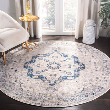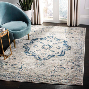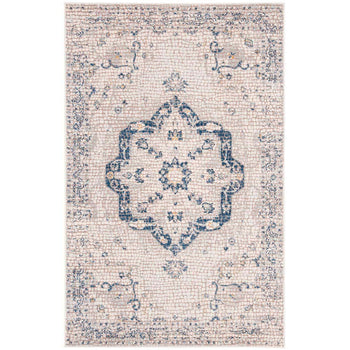 Elevate your living space with the timeless elegance of our 4' x 6' Small Rectangle Area Rug. Crafted in the rich hues of navy and ivory, this exquisite piece brings a classic touch to any room with its intricate ornamental design, featuring a beautiful central medallion surrounded by delicate florals and scrollwork.