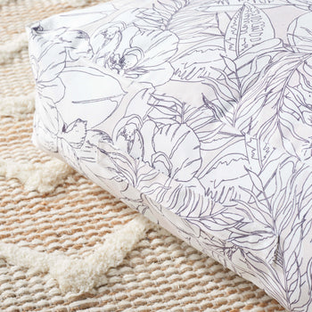 Give your Decor a soft, organic touch with this marvelous Matlea Floor Pillow. Matlea's gently sketched ferns and florals are beautifully offset by the subtle grid patterned backdrop, and soothing beige and grey tones seamlessly accent any interior.
