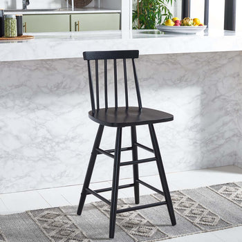 Refreshing Timeless Forms For Today's Classic-Contemporary Interiors, This May Counter Stool Is Ideal For The Country-Chic Kitchen. May's Iconic Spindle Back Silhouette Is Perfectly Updated With A Modern Swivel Seat And Jet Black Finish, Flawlessly Complementing Any Room's Color Scheme.