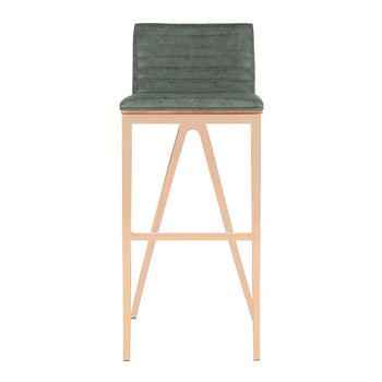 Elevate the art of imbibing with this retro style bar stool. Its ash green faux leather upholstery with gently tufted curves is paired with deluxe copper finished legs to make it the best seat in the house. An instant update for any bar or entertaining area.