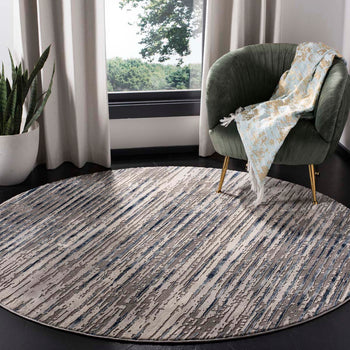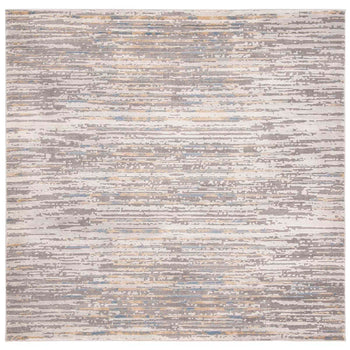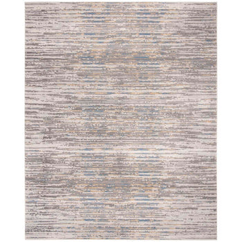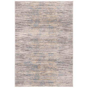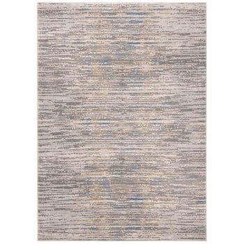 Crafted with unparalleled precision, our rug features a stunning grey and gold color palette that exudes sophistication and contemporary flair. The intricate patterning is a testament to its fine craftsmanship, showcasing an abstract design that appears to mimic the natural variation and layered striations found in stone or wood, with a harmonious blend of grey hues speckled with captivating gold accents.