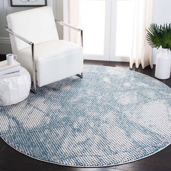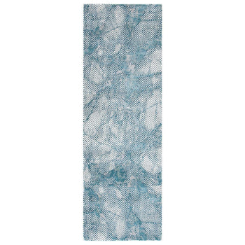 The rug's pattern, as shown in the image, features a captivating abstract motif in a serene combination of turquoise and ivory tones, offering both tranquility and visual interest to any room. Its OEKO-TEX certification guarantees that the rug is free from harmful substances, giving you peace of mind for a safe and eco-friendly addition to your home.