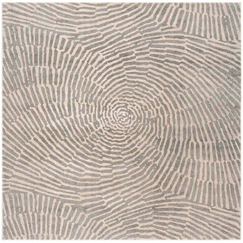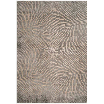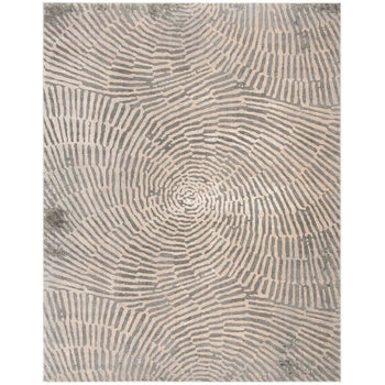 The rug's unique pattern, as showcased in the image, features an intricate and modern interpretation of concentric circles that create a ripple effect, imparting a sense of calm and sophistication to any space. The neutral taupe palette makes it easy to integrate this rug into your existing decor, serving as a harmonious backdrop for your furniture and accent pieces.