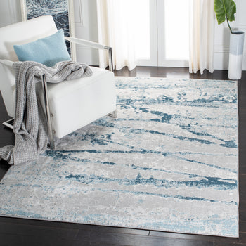 Transform your space with the understated elegance of our Contemporary Style Area Rug, measuring a versatile 4' X 6'. This small rectangular piece artfully combines a soothing palette of light grey and blue, creating a serene foundation for any room in your home.