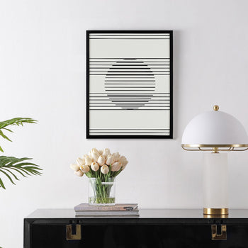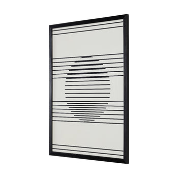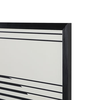 Bring elevated drama and style to your home with our captivating, Measured Gaze framed wall art. The abstract composition plays with pure lines and shapes to achieve rich contrast and dynamic rhythm. The lines intersect and vary in thickness to intrigue the eye and create an optical illusion. A true showstopper, our printed wall art is adorned in black and ivory to enliven your entryway, living room, or dining area.