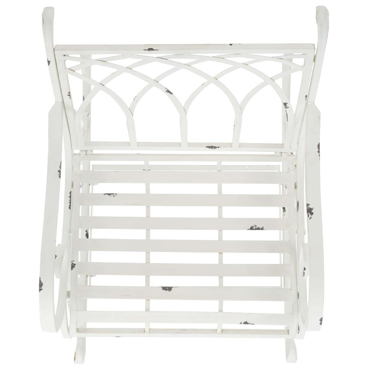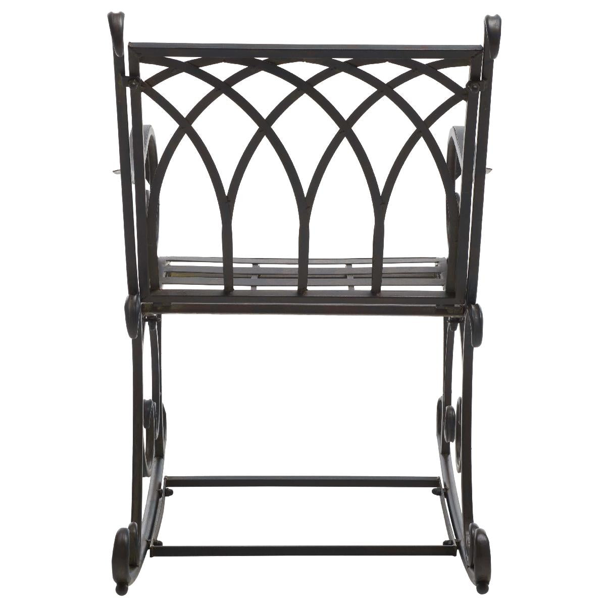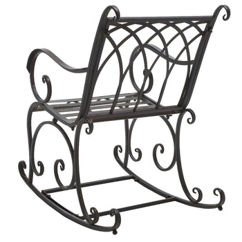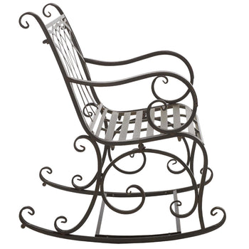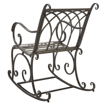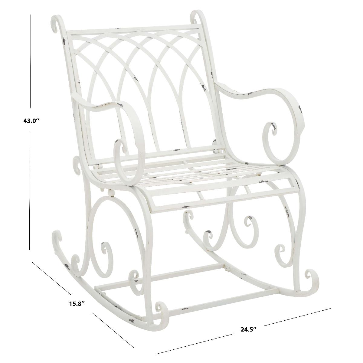 Enjoy your outdoors to the fullest with our elegant and charming Medrano rocking chair. The rocking chair is elevated with classic style and beautiful ornate details to become a charming accent for any outdoor space. Crafted in a durable and sturdy iron frame, our rocking chair adorns an antique white finish to complement and grace your outdoor spaces for years to come. Our rocking chair can easily become your favorite spot to relax and lounge in a garden, patio, or deck.