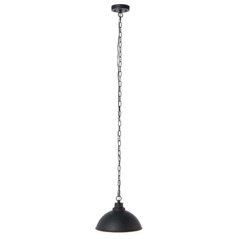 Uplift your outdoor living area with the rustic charm of the Melila outdoor pendant. Featuring a wide and striking dome, our pendant light makes a bold and classy statement. Its black metallic surface is skillfully hammered to attain a subtle yet charming texture. Enriched with industrial charm and lively textures, our pendant lends a warm and focused light to illuminate your porch and covered patio.