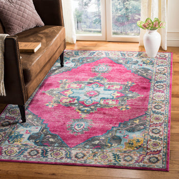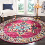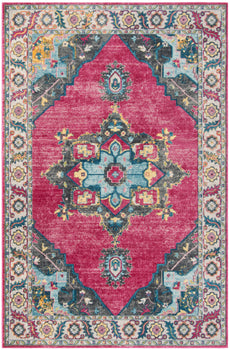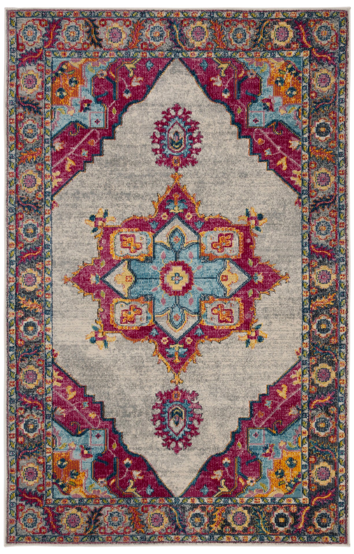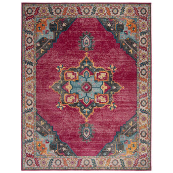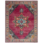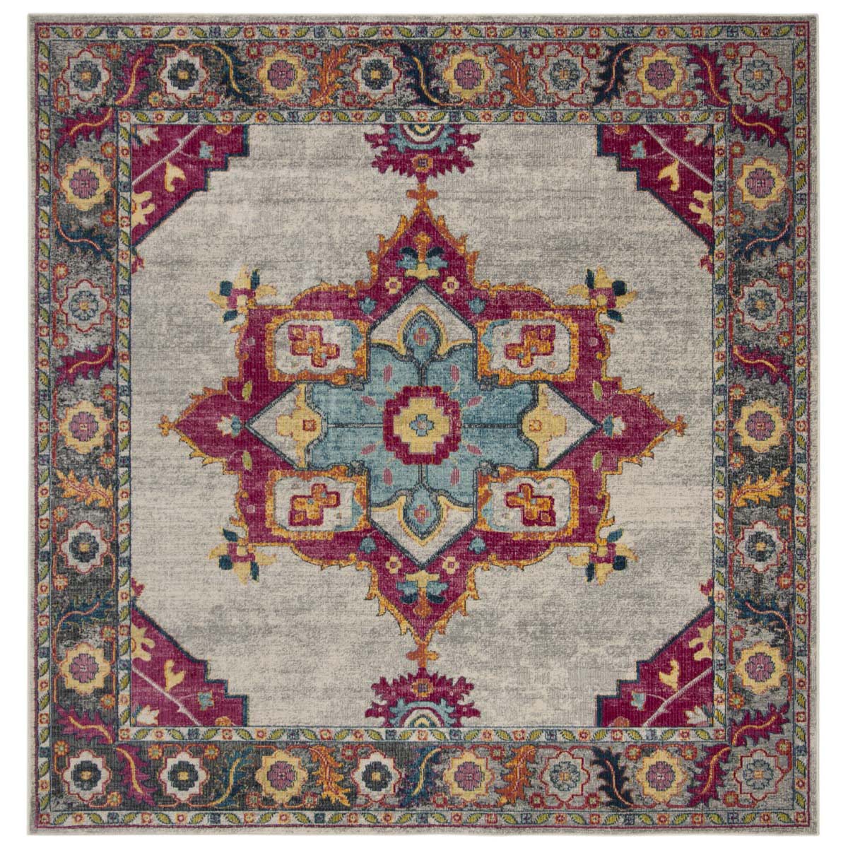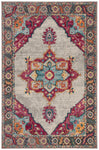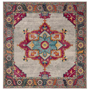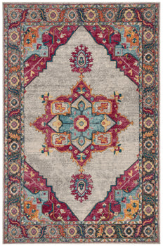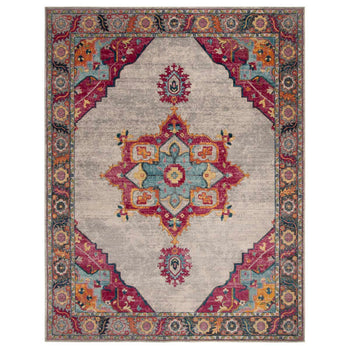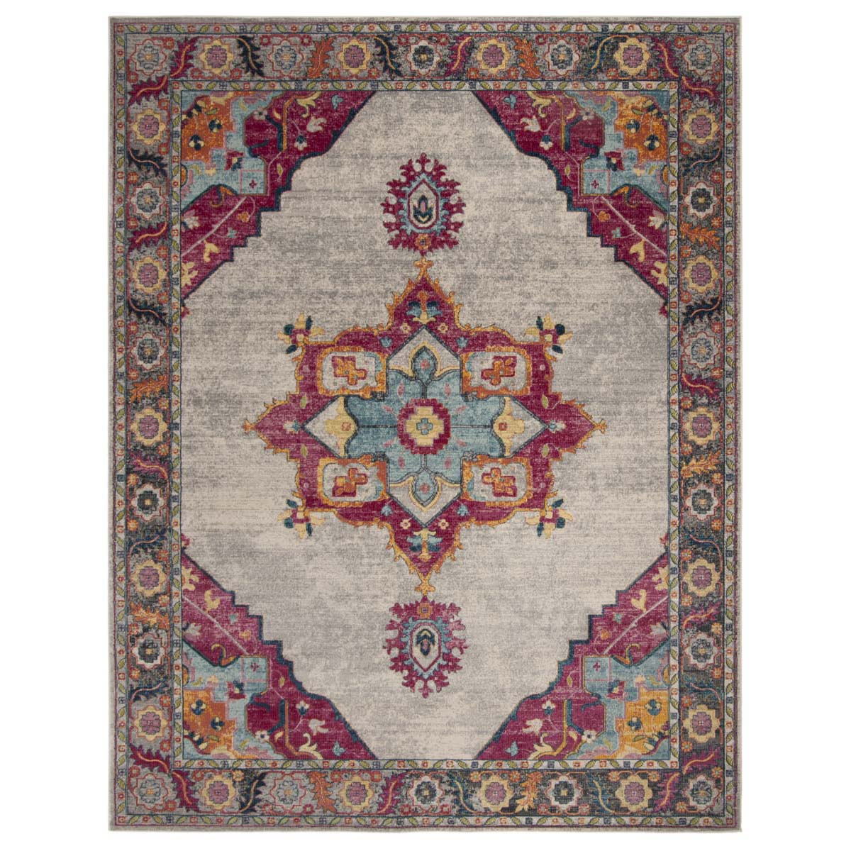The intricate pattern displayed in the image showcases a harmonious blend of cream as the dominant backdrop, accentuated by a dynamic spectrum of multi-colored details. The ornate central medallion, bordered by intricate motifs and an elegantly detailed border, brings an air of sophistication and global inspiration to any area of your home.
