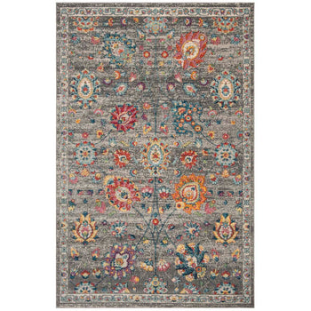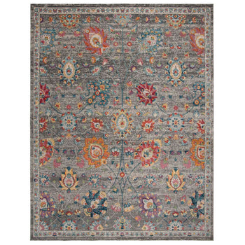 Boasting a rich tapestry of colors set against a calming grey backdrop, the design features a timeless pattern with spontaneous bursts of colorful florals and ornate details. This rug is made in Turkey, a country renowned for its centuries-old rug-making craftsmanship, assuring you of a product with deep cultural roots and unparalleled artistry.