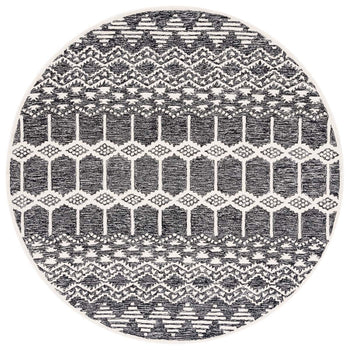 Discover the perfect blend of cultural heritage and modern design with our Bohemian-style, Hand Tufted Wool and Cotton Area Rug. Crafted by skilled artisans in India, this round 6' X 6' rug features an intricate pattern that merges black and ivory hues to create a visually captivating centerpiece for any room.