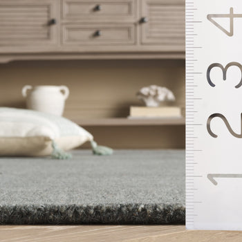The robust construction features a blend of 80% wool and 20% cotton, creating a soft yet durable texture with a comfortable 1/4-inch pile height.