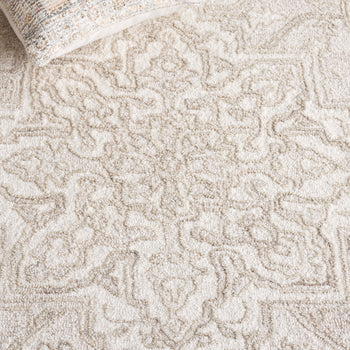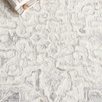 Elevate your living space with this elegant area rug. Its Ivory hues blend seamlessly into any room, providing a sophisticated yet cozy touch. This rug, with a pleasing 3/8 inch height, is meticulously hand tufted, showcasing the artistry from India. Crafted from 85 percent Wool and 15 percent Cotton, it offers a gentle texture and warmth underfoot. The Transitional style complements both modern and traditional interiors effortlessly. With its minimalist design, this rug becomes a versatile piece, enhancing various decor themes. Transform your home today with this stunning addition.