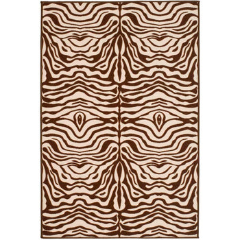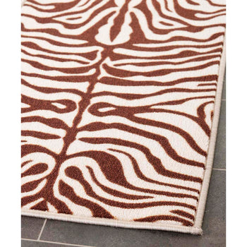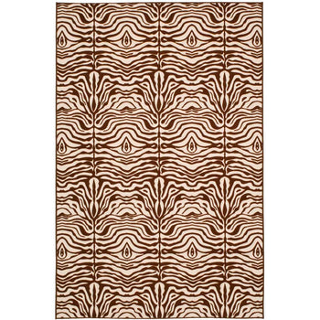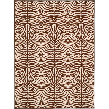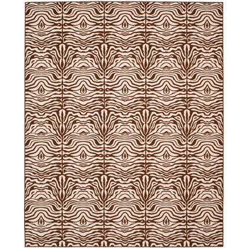 The rug sports a striking creme and brown color palette, blended seamlessly into an exotic pattern that draws inspiration from natural designs. These organic shapes create a sense of harmony and sophistication, making it an ideal choice for anyone looking to introduce a touch of nature into their decor.