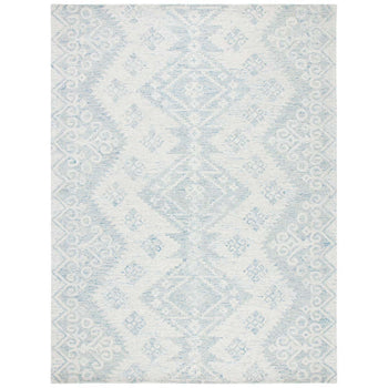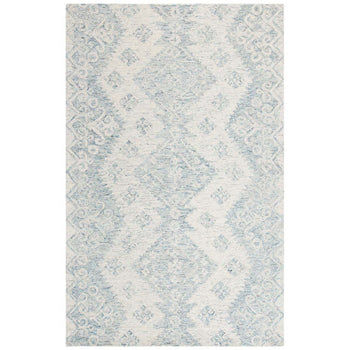 Please note: While the image showcases the rug pattern, the actual size will be as specified in the product details. Enhance your home with this beautiful ivory and blue hand tufted Indian wool accent rug; a statement of luxury and craftsmanship.