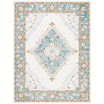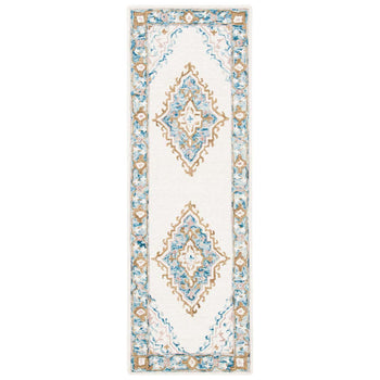 Crafted with care and precision in India, the rug showcases an exquisite ivory and blue color palette that will seamlessly blend with your existing decor. The accent shape is designed to add a touch of elegance to any room, be it your entryway, beside your bed, or as a sophisticated highlight in your study.