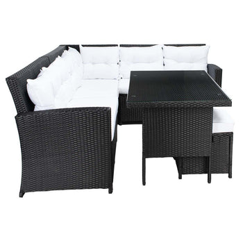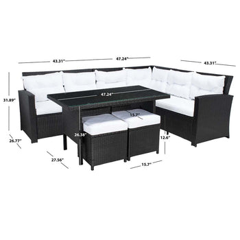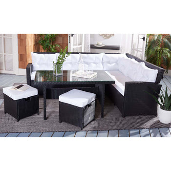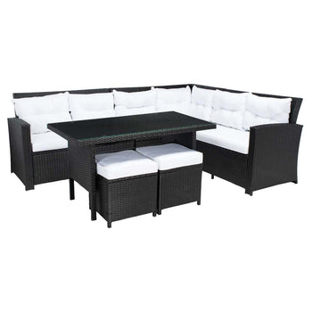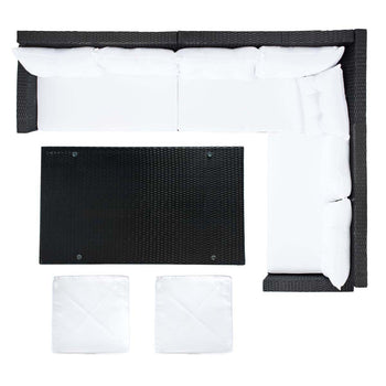 Luxurious living doesn's have to mean staying indoors! Keep the party going under the stars with this Miki Living Set. Miki's black wicker frames and soft white cushions ensure hours comfortable and stylish outdoor entertaining, and a glass topped table p