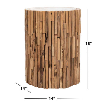 Dramatic texture and clean lines give the Minidoka Round Stool its rustic chic character. Crafted with reclaimed teak wood, its medium oak finish ensures that it blends seamlessly into contemporary interiors. Minidoka stands easily on its own as a sophisticated sculptural element it, but just as deftly showcases books, a glass of wine or a sophisticated extra seat at your next soiree.