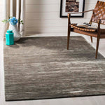 The rug's pattern exhibits an artful gradient effect, adding a contemporary flair to its timeless appeal. Perfect for creating a serene and welcoming atmosphere in your home, this rug serves both aesthetic and functional purposes with its plush surface and eye-catching design.