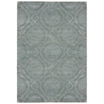 The rug features a captivating pattern with harmonious circular designs and geometric accents, beautifully rendered in shades of blue. The pattern exudes a sense of classical charm mixed with modern symmetry, making it versatile enough to complement both traditional and contemporary interiors.