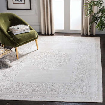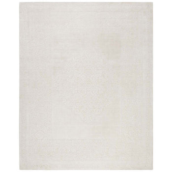 The rug boasts a sophisticated traditional style featuring intricate patterns and floral motifs that exude a sense of heritage and charm. It's perfect for creating a focal point in your room while its neutral ivory hue harmonizes with any color scheme.