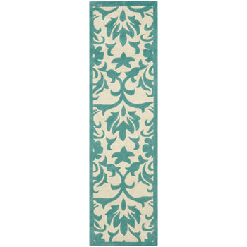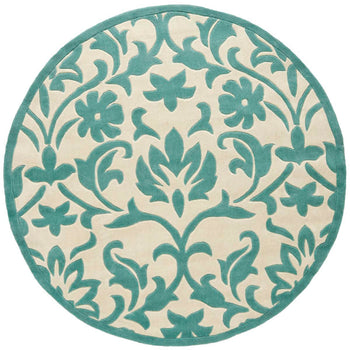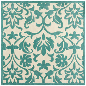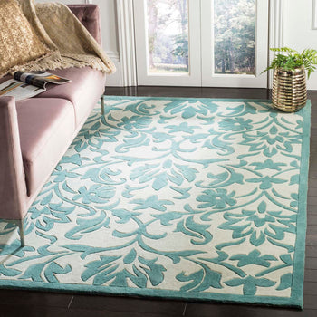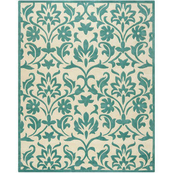 The ivory and light blue color palette lends itself to a serene and calming ambiance, while the rug's ornate pattern brings a touch of sophistication to any interior. The exquisite damask-inspired motifs feature intricate flourishes and botanical elements that create a harmonious visual that is both traditional and refreshingly modern.
