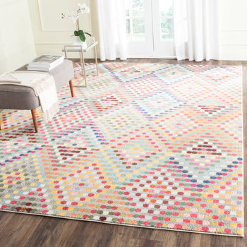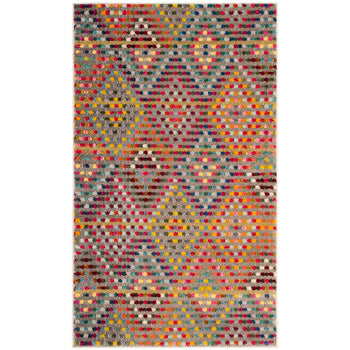 The striking MULTI / BEIGE color palette weaves together a vibrant mix of hues, with a rug pattern that draws the eye and adds dimension to any room. The intricate design suggests a combination of traditional charm and contemporary chic, making it a versatile choice for a variety of decors.
