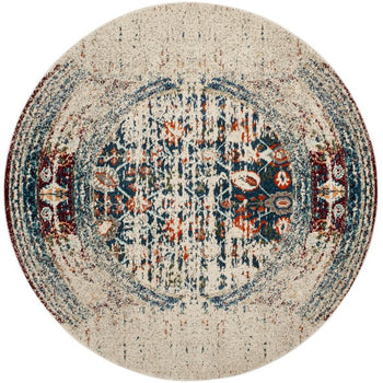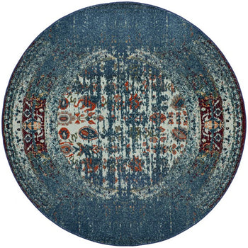 Embrace timeless charm and sophistication in your space with our exquisite 3' X 3' Round area rug. Perfectly blending ivory and blue hues with a hint of classic allure, this rug infuses your home with an air of vintage elegance. Intricately power-loomed in Turkey, this piece combines a harmonious mix of 57% Polypropylene, 30% Cotton, and 13% Polyester, reflecting a standard of durability and comfort.